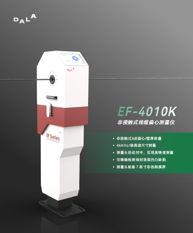 EF系列完全非接触式偏心测量仪,专为电线电缆偏心率、壁厚、直径、椭圆度精密测量,表面凹凸缺陷高速检测而设计。操作员可以快速清晰地获得用于控制或调整挤出机头的线缆生产尺寸信息,确保被测电缆的壁厚和直径保持在最佳尺寸,以保持电缆生产质量并减少材料使用。